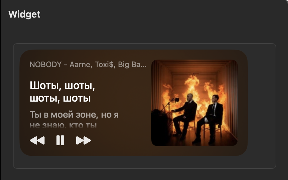 у программы также есть собственный виджет разных размеров с текстами песен.