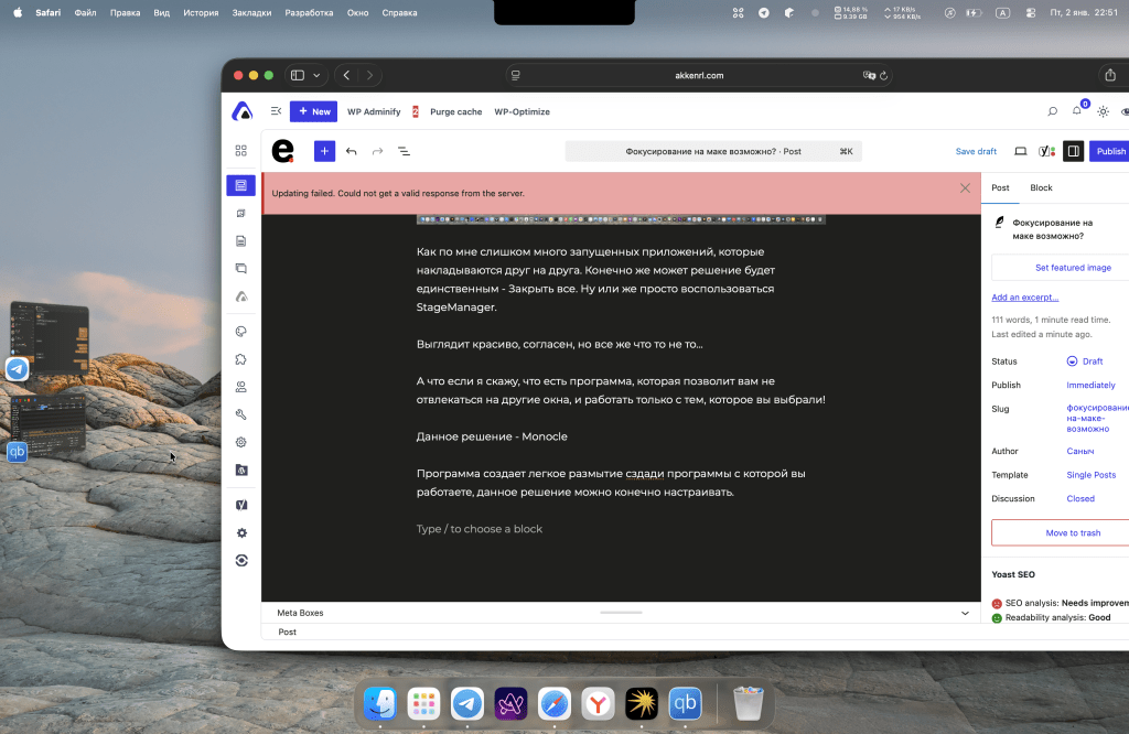 Как по мне слишком много запущенных приложений, которые накладываются друг на друга. Конечно же может решение будет единственным – Закрыть все. Ну или же просто воспользоваться StageManager.